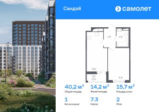 Строим кварталы для жизни с заботой о будущем. Предлагается 1-комнатная квартира комфорт-класса 40,15 кв.м в корпусе 7.3 на 2 этаже, в ЖК "Сандэй"