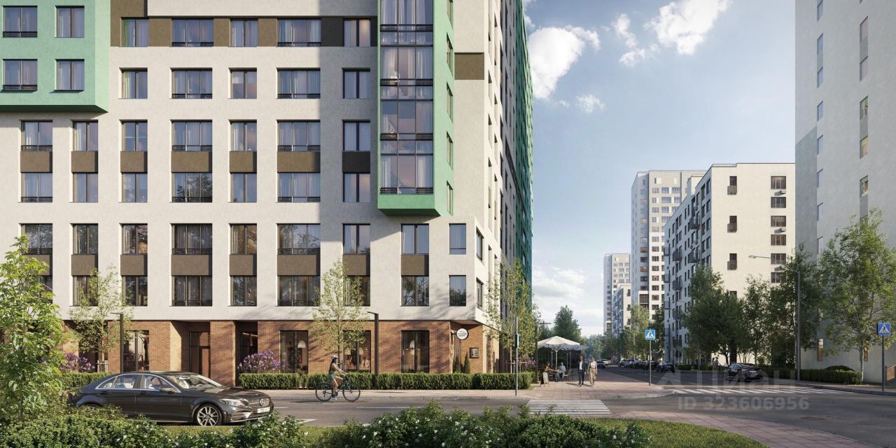 Комплекс состоит из 11 монолитных домов высотой от 12 до 23 этажей с разноцветными фасадами и панорамными балконами.