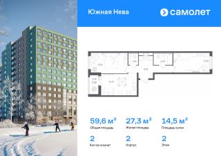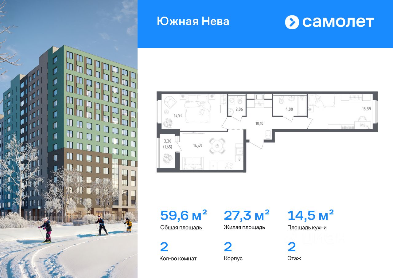 Строим кварталы для жизни с заботой о будущем. Предлагается 2-комнатная квартира комфорт-класса 59,63 кв.м в корпусе 2 на 2 этаже, в ЖК "Южная Нева"