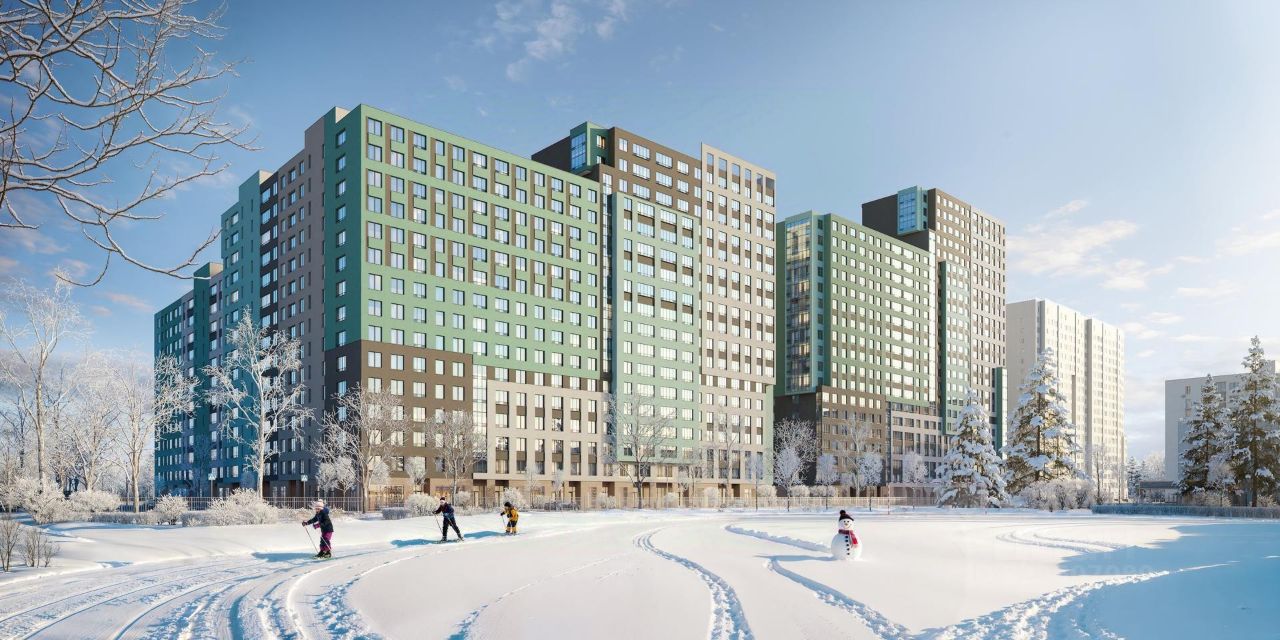 Комплекс состоит из 11 монолитных домов высотой от 12 до 23 этажей с разноцветными фасадами и панорамными балконами.