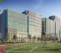 Комплекс состоит из 11 монолитных домов высотой от 12 до 23 этажей с разноцветными фасадами и панорамными балконами.