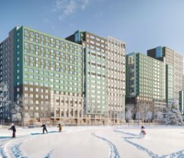 Комплекс состоит из 11 монолитных домов высотой от 12 до 23 этажей с разноцветными фасадами и панорамными балконами.