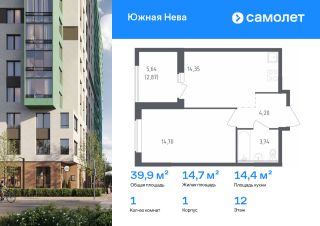 Строим кварталы для жизни с заботой о будущем. Предлагается 1-комнатная квартира комфорт-класса 39,86 кв.м в корпусе 1 на 12 этаже, в ЖК "Южная Нева"