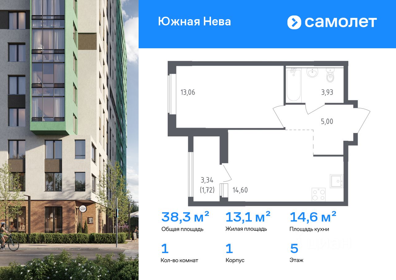 Строим кварталы для жизни с заботой о будущем. Предлагается 1-комнатная квартира комфорт-класса 38,31 кв.м в корпусе 1 на 5 этаже, в ЖК "Южная Нева"