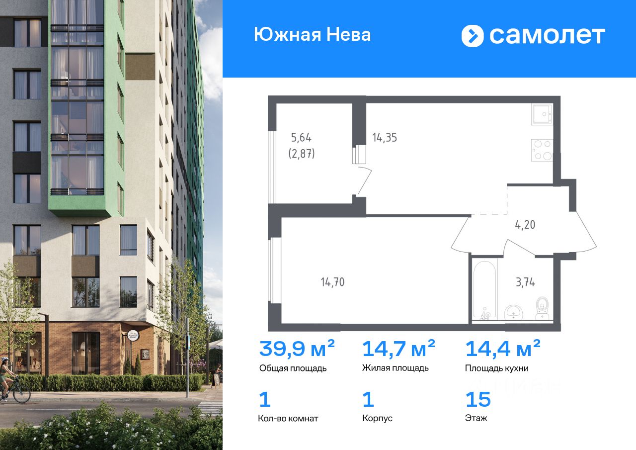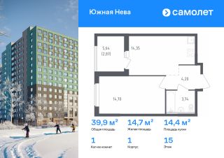 Строим кварталы для жизни с заботой о будущем. Предлагается 1-комнатная квартира комфорт-класса 39,86 кв.м в корпусе 1 на 15 этаже, в ЖК "Южная Нева"