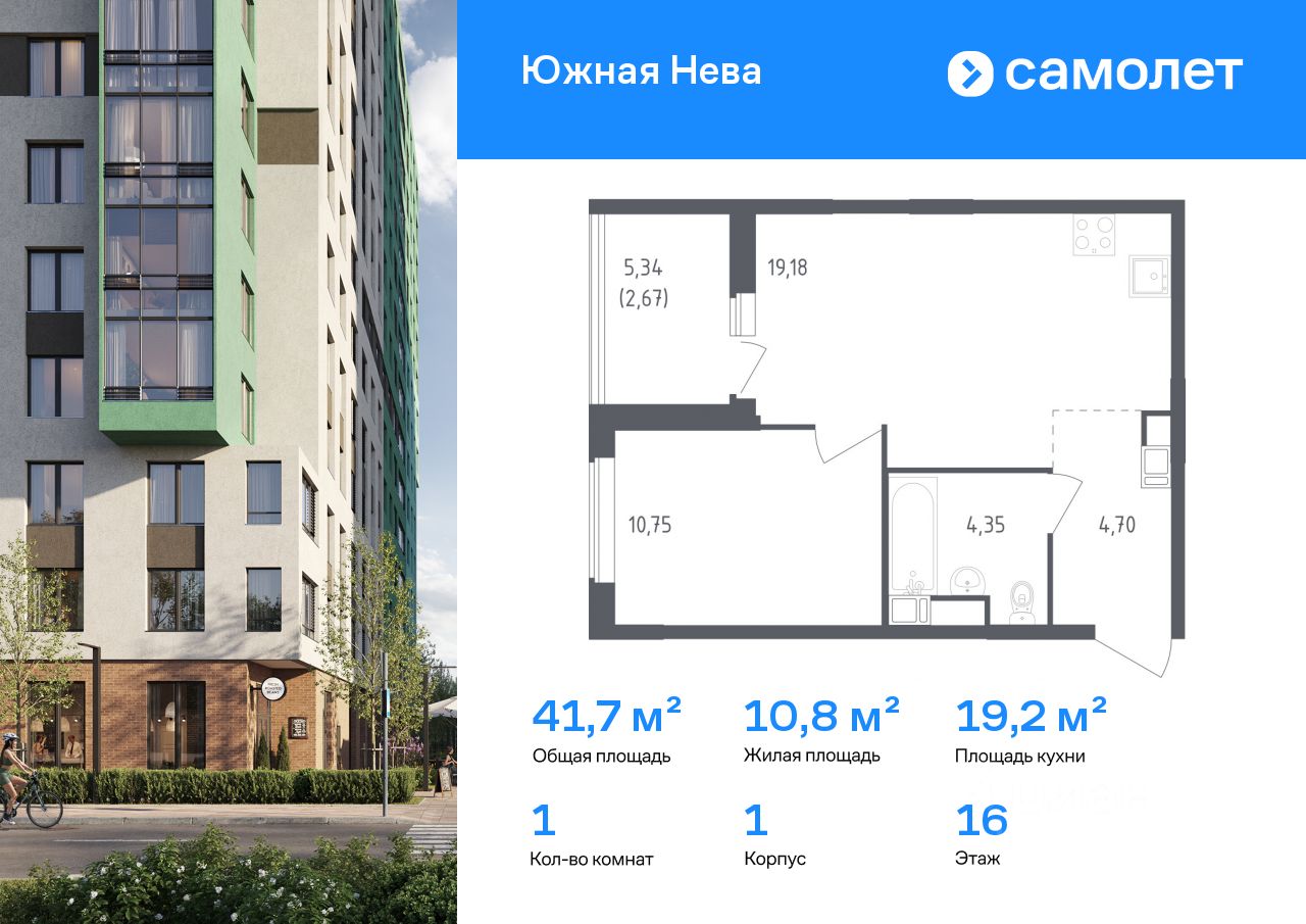 Строим кварталы для жизни с заботой о будущем. Предлагается 1-комнатная квартира комфорт-класса 41,65 кв.м в корпусе 1 на 16 этаже, в ЖК "Южная Нева"