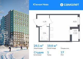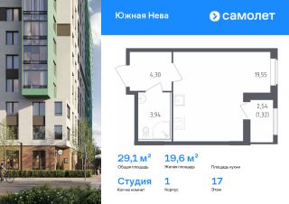 Строим кварталы для жизни с заботой о будущем. Предлагается квартира студия комфорт-класса 29,11 кв.м в корпусе 1 на 17 этаже, в ЖК "Южная Нева"