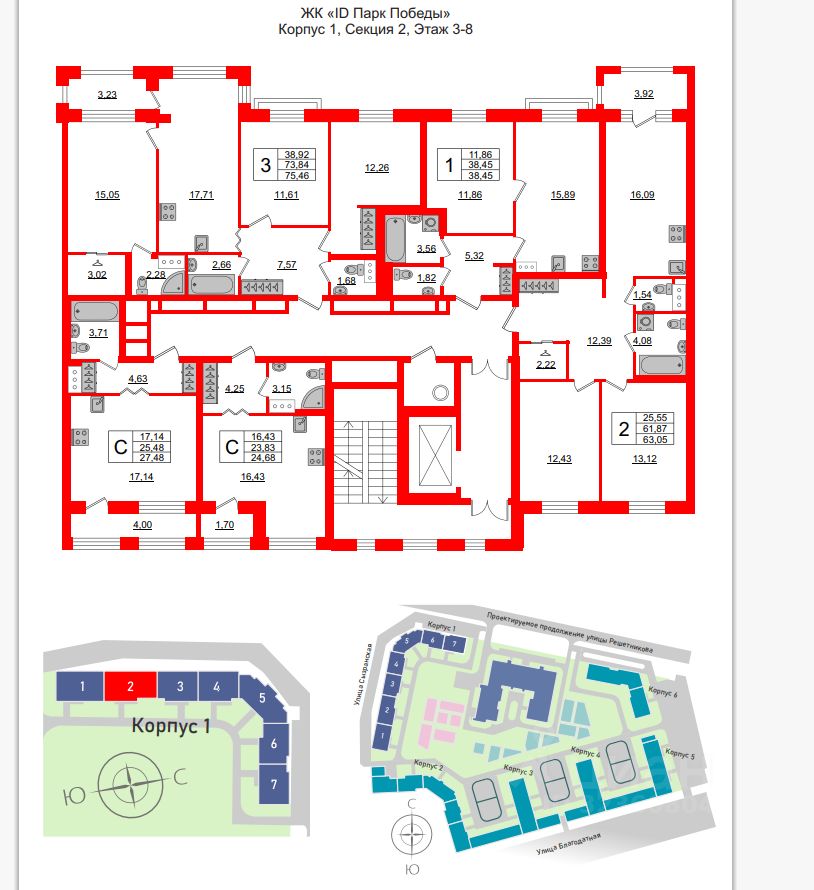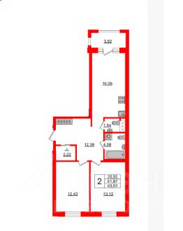 Две спальни: 12,50 кв. м и 13 кв. м.