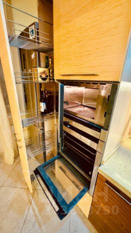 В квартире остается кухонный гарнитур со встроенной техникой (посудомоечная машина, варочная панель, духовой шкаф, встроенная микроволновая печь), встроенный шкаф в спальне