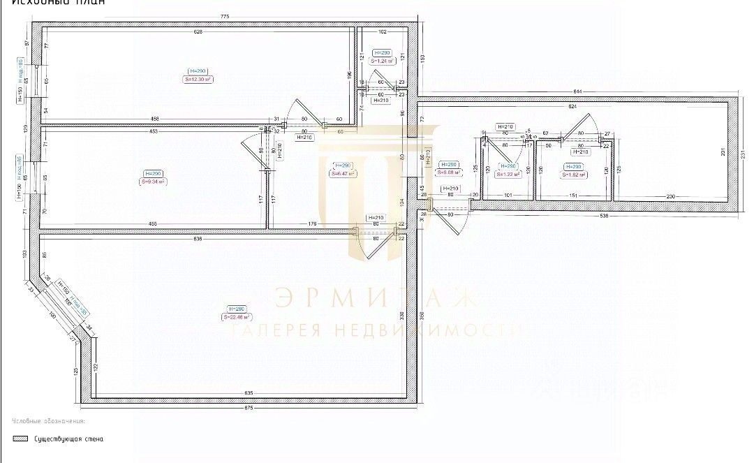 Три изолированные комнаты 22,5 + 12,3+ 9,5 м² позволят создать отдельные зоны для семьи, работы или гостей.