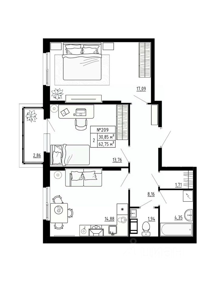 Продаётся 2-комнатная квартира в строящемся доме (Корпус 5), срок сдачи: IV-кв. 2025, общей площадью 62.75 кв.м., на 3 этаже. ЖК "Аннино Сити" как и любое жилье в стиле Urban Village имеет все достоинства современных жилых комплексов в мегаполисе, но при этом есть ряд неоспоримых преимуществ загородной жизни: малоэтажность, хорошо продуманная инфраструктура внутри комплекса, собственные котельные, охраняемые территории с зелеными насаждениями, пешеходные и зоны отдыха, детские и спортивные площадки, а также достаточное количество парковочных мест.