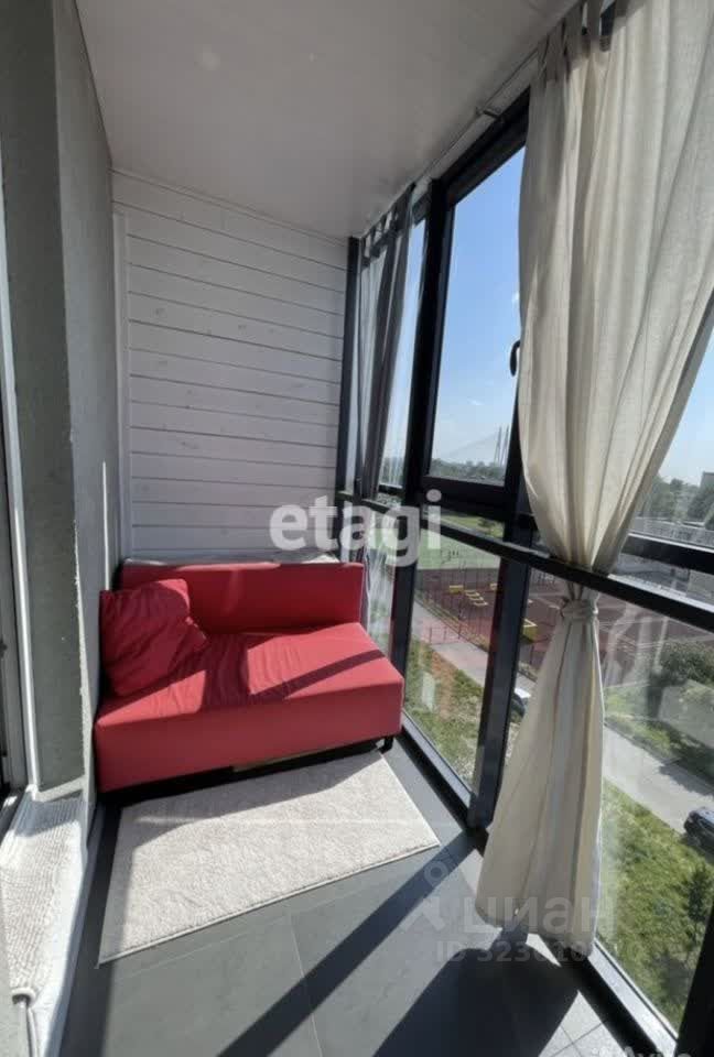 Просторный балкон площадью 4 м² с видом на вантовый мост и Неву — идеальное место для отдыха.