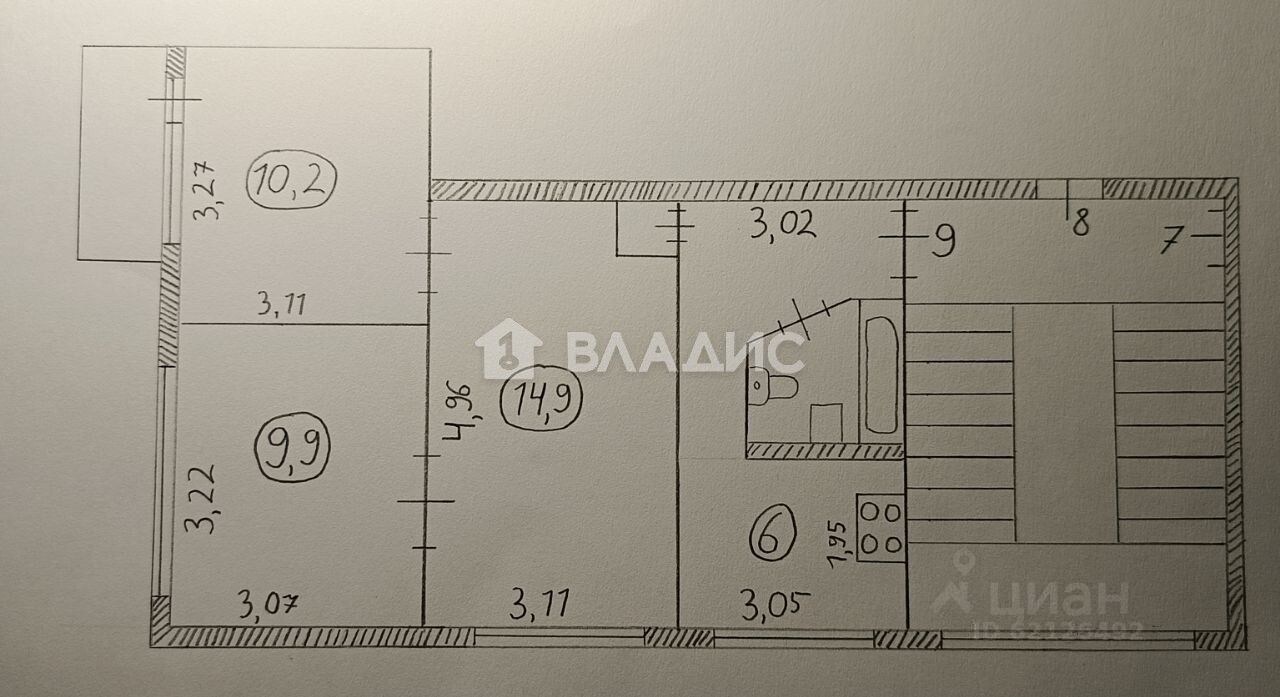 - Общая площадь: 49,6 кв. м