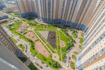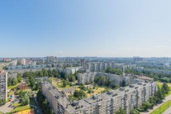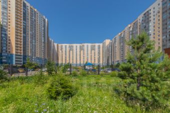 Расположена на 15 этаже 25-этажного дома с видом во двор ЖК Аврора и на панораму Северной Столицы.