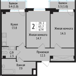 Общая площадь71,4 м²