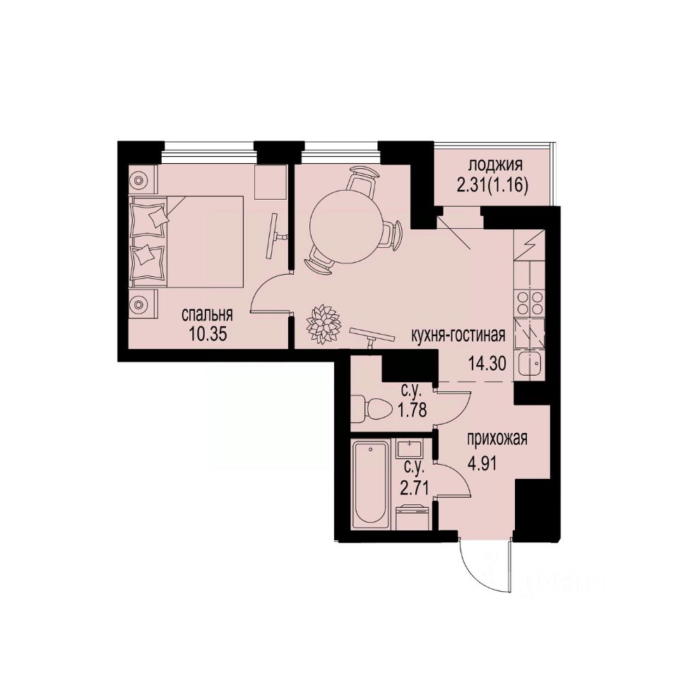 Общая площадь35,21 м²