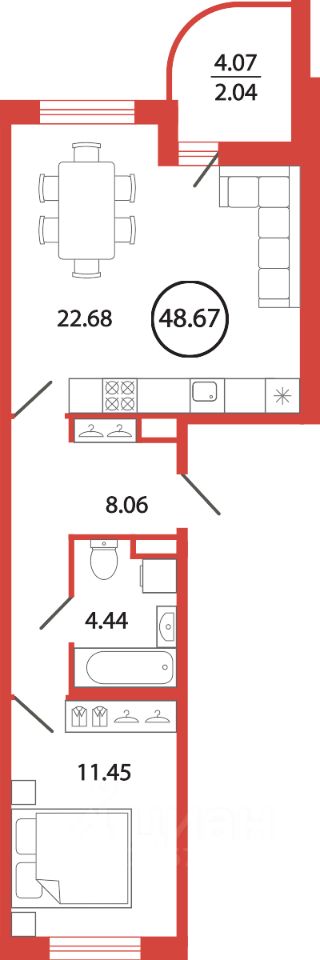 Продаётся e2 комнатная квартира (евро) в жилищном комплексе "Энфилд" (корпус Дом 25 секция 1). Общая площадь 48.67 кв. м, площадь комнат 11.45 кв.м. совмещенный санузел. Квартира расположена на 2 этаже 12 этажного дома. Корпус сдан.