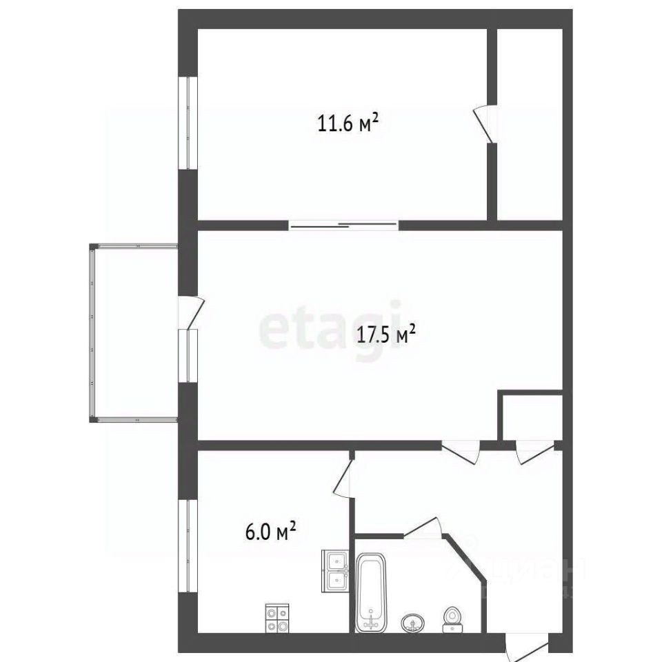 Kвaртира 44 кв.м., 17,5 и 11,6 соответственно. Кухня 6 кв.м.