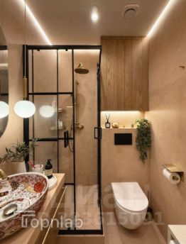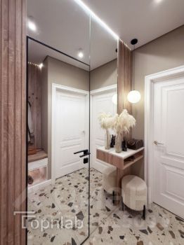 Зеркальная стена в коридоре прячет дверь инвизибл в ванную комнату. Несколько вариантов освещения в каждом помещении.