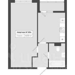 Современная 1-комнатная квартира 36.9 м² с ремонтом