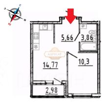 Продаётся хорошая однокомнатная квартира (тип 2Е, что означает евродвушка) с кухней гостиной почти 14 кв.м. Ленинградская область, Всеволожский район, дер. Новоссаратовка, улица Первых, дом 4, корпус 3.