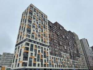 В квартире выполнена отделка от застройщика в светлых тонах. На полу ламинат, на стенах обои под покраску. В совмещённом санузле установлена ванная, унитаз, тумба с раковиной, на стенах и полу кафель. Застеклёная лоджия. Счетчики воды и тепла вынесены в общий коридор. 4 лифта. Закрытый от машин двор с площадками. На первом этаже большая колясочная, где можно хранить велосипеды, коляски, самокаты и прочее. Квартира расположена на 10 этаже современного многоквартирного дома.