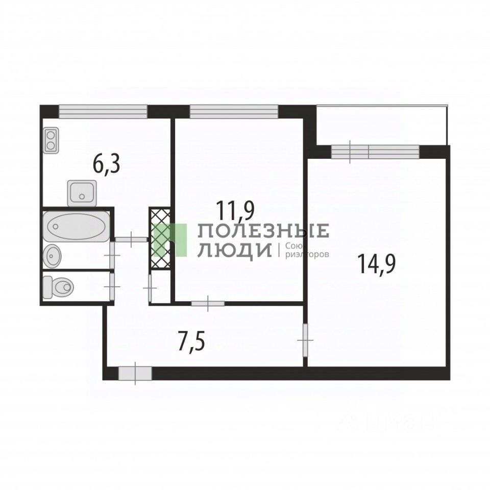 Обе комнаты (14,9 м² и 11,9 м²) изолированы, вход из коридора — удобно для семьи: у каждого своё приватное пространство.