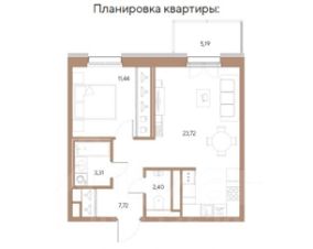 Спальня — 11,4 м²; раздельный санузел; просторный балкон