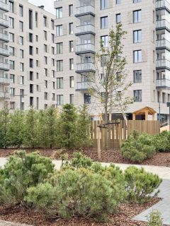 Атмосфера европейского двора с деликатным ландшафтом и пространством для всех возрастов: детские зоны с канатной дорогой и мягким конструктором, спорт, настольные игры, амфитеатр.