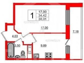 Продаётся однокомнатная квартира площадью 33,5 кв. м.
