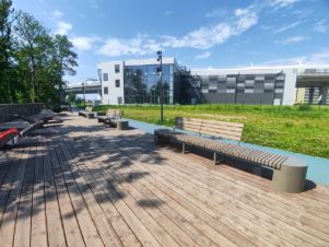 - Своя обустроенная набережная с зонами отдыха и освещением. Множество детских площадок, спортивных площадок, Французский детский сад, салоны красоты, кафе.