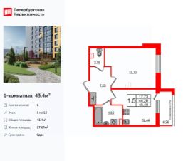 Продается просторная 1-комнатная квартира от застройщика в жилом комплексе "Прайм Приморский" в динамичном Приморском районе.