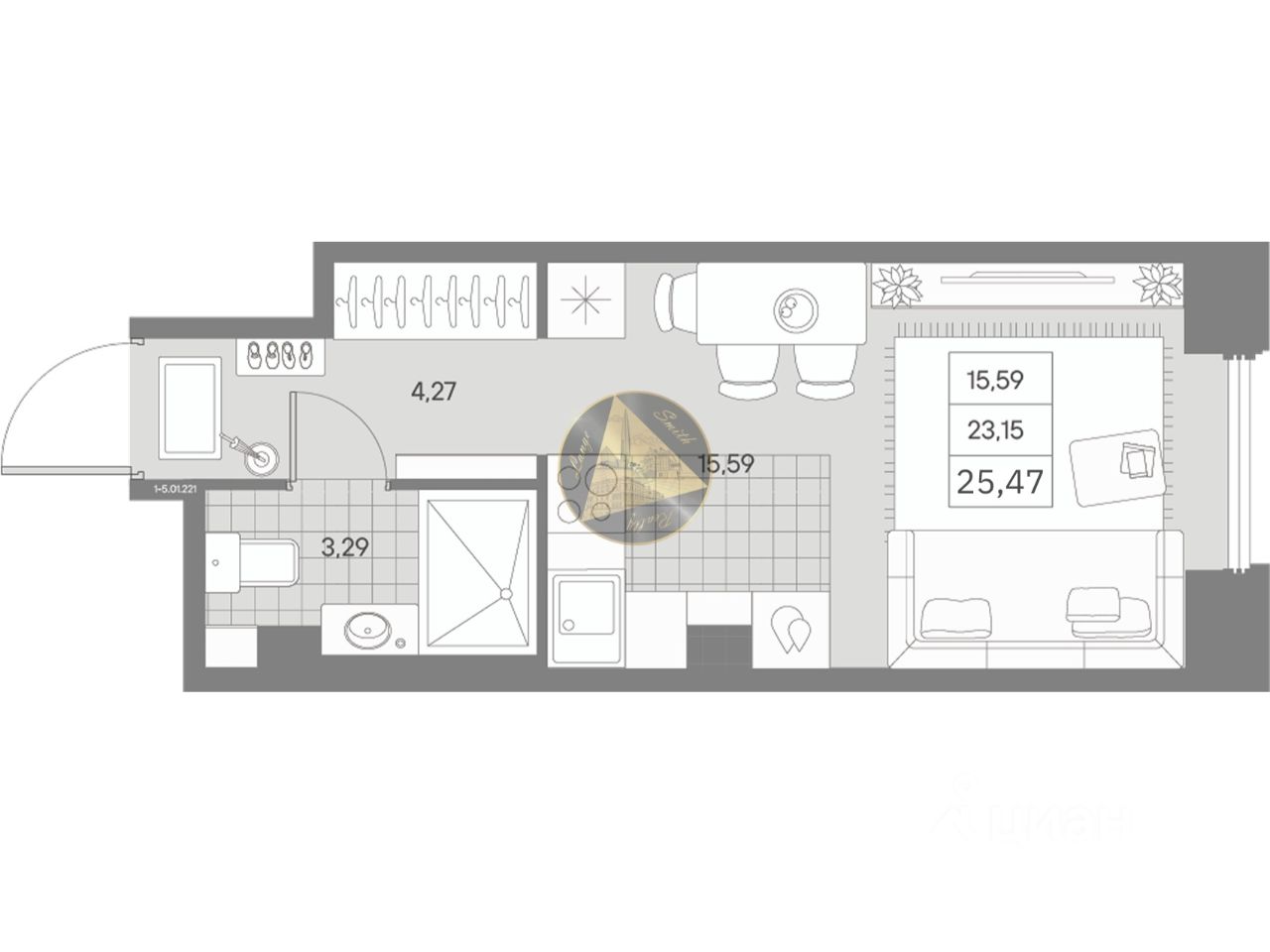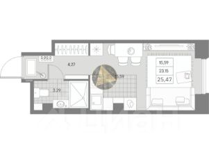 Квартира находится на 2/9 этаже. Общая площадь квартиры 25.47 м2.