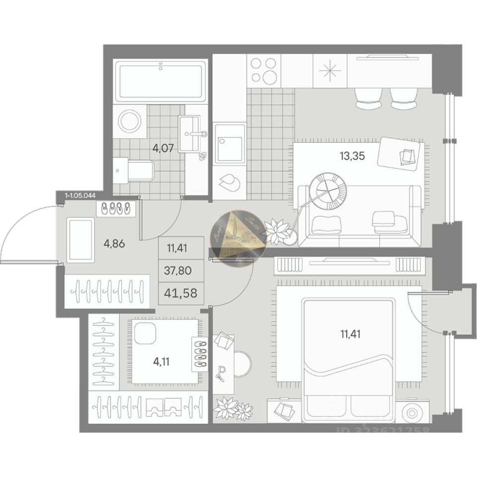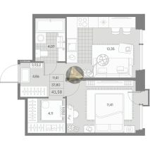 Квартира находится на 6/9 этаже. Общая площадь квартиры 41.58 м2.