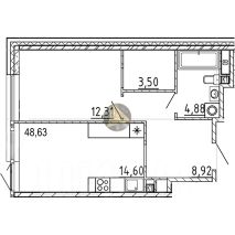 Квартира находится на 3/5 этаже. Общая площадь квартиры 48.63 м2.