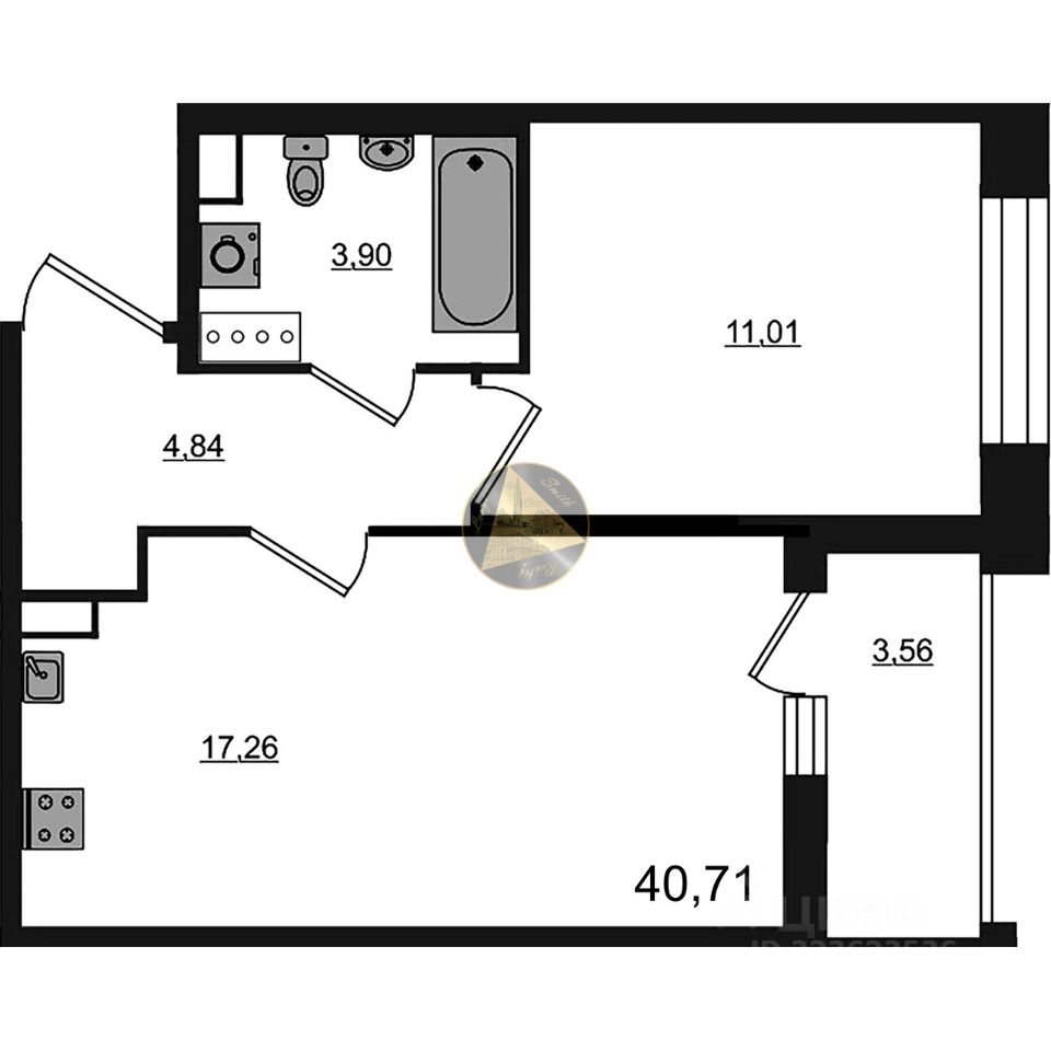 Квартира находится на 8/12 этаже. Общая площадь квартиры 40.71 м2.