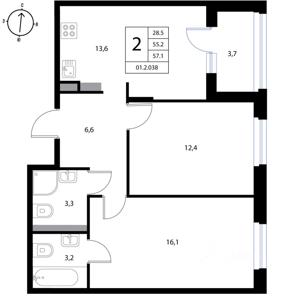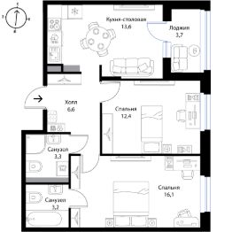 Продаётся 2-комнатная квартира в строящемся доме (Дом 1), срок сдачи: II-кв. 2026, общей площадью 57.1 кв.м., на 3 этаже. Новый жилой комплекс "Экография" от застройщика "ОХТА Групп - Петергоф" расположен по адресу Ленинградская область, Ломоносовский район, Низинское сельское поселение, деревня Ольгино.