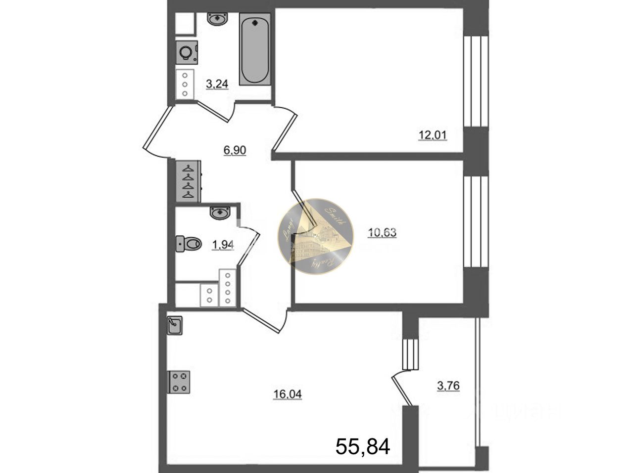 Квартира находится на 6/12 этаже. Общая площадь квартиры 55.84 м2.