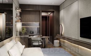 -Для резидентов комплекса предоставляется 1000 метров общественных пространств, круглосуточные услуги и сервис 5* отелей: лобби с ресепшн и консьерж-сервисом, коворкинг, фитнес и спа, кинозал и зал для семейных торжеств, детский клуб, лаундж с библиотекой и терраса площадью 120 кв. м для резидентов;