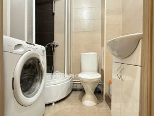 -Совмещённый и полностью оборудованный санузел с душевой кабиной и настенной плиткой от пола до потолка.