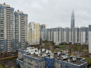 Красивый вид во двор, на Лахта-центр. Квартира светлая. Ориентация окон - юг.