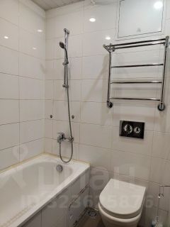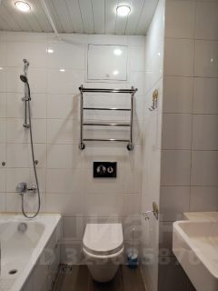 Просторная студия включает в себя объединенный санузел с необходимой сантехникой.