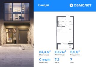 Строим кварталы для жизни с заботой о будущем. Предлагается квартира студия комфорт-класса 24,42 кв.м в корпусе 7.2 на 7 этаже, в ЖК "Сандэй"