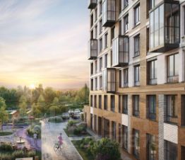 Квартал "Живи! В Рыбацком" в Невском районе Санкт-Петербурга расположен рядом с рекой Славянкой и парком.