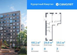 Строим кварталы для жизни с заботой о будущем. Предлагается 2-комнатная квартира комфорт-класса 68,1 кв.м в корпусе 8 на 3 этаже, в ЖК "Курортный Квартал"