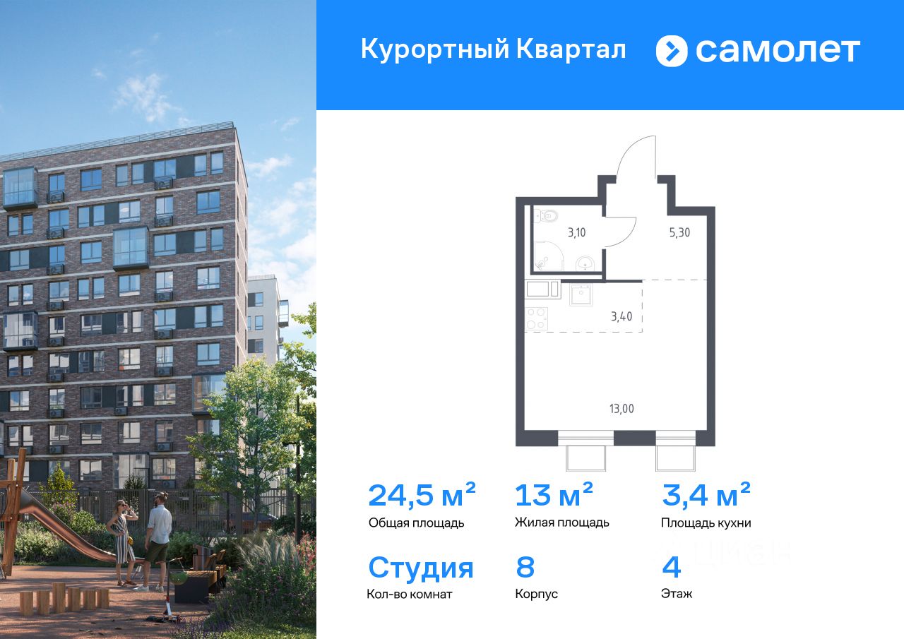 Строим кварталы для жизни с заботой о будущем. Предлагается квартира студия комфорт-класса 24,5 кв.м в корпусе 8 на 4 этаже, в ЖК "Курортный Квартал"