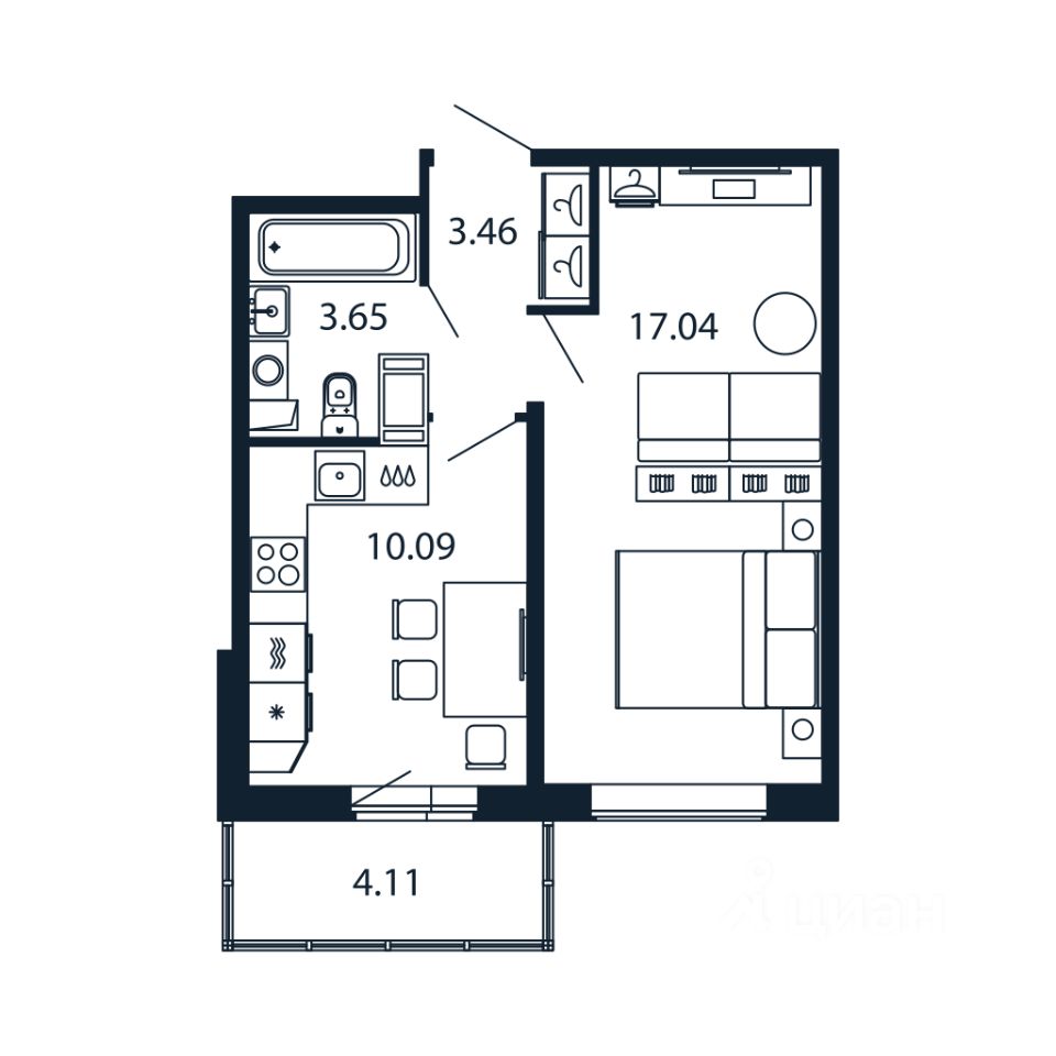 Прямая продажа от застройщика! Готовая Однокомнатная квартира 33.5 кв.м с кухней 10.09 кв.м с предчистовой отделкой на 3 этаже в сданном ЖК "Полис Лаврики".