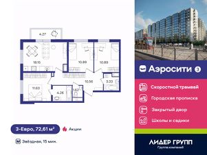 Кирпично-монолитный 12-ти этажный дом на 979 квартиры в составе среднеэтажного семейного квартала. Комплекс состоит из двух корпусов, один из которых более камерный и ориентирован на семейных покупателей в секциях всего пять квартир на этаже. Территория комплекса закрыта и благоустроена. АЭРОСИТИ 3 примыкает к уже реализованной части квартала. У дома расположены остановки общественного транспорта, в соседних домах открылись магазины и пекарни, работают два детских сада и две школы с бассейнами, строится две поликлиники. В ближайшей перспективе рядом с ЖК появится остановка бесшумного скоростного трамвая. Скидка 1% жителям района.