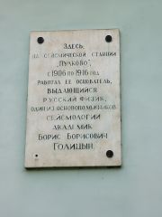 Одноэтажное здание в стиле неоклассицизма, было построено по инициативе князя Б. Б. Голицына, выдающегося геофизика в 1908-1910 годах, по проекту архитектора А. А. Полещука, восстановлено в 1953году, находится к северо-западу от главного здания обсерватории на шлейфе пологой террасы, служит акцентом исторической планировочной структуры между старым и новым пейзажными районами парка.