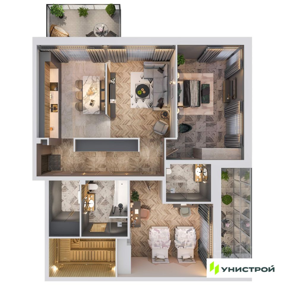 В квартирах предусмотрена предчистовая отделка с качественными материалами: металлические входные двери со smart-замками, улучшенная теплоизоляция, окна с энергоэффективными стеклопакетами, стяжка пола, скрытая разводка коммуникаций, радиаторы с терморегуляцией. Входы в парадные оснащены домофонами с бесконтактным доступом и распознаванием лиц. Питьевая вода будет подаваться в каждую квартиру. Автоматизирован учет потребления ресурсов.
